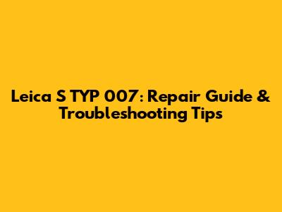 Leica S TYP 007: Repair Guide & Troubleshooting Tips