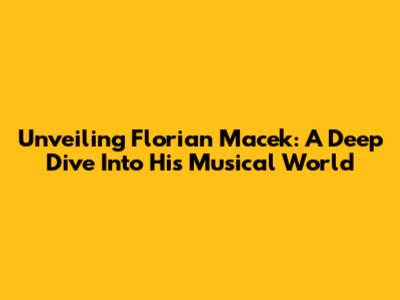 Unveiling Florian Macek: A Deep Dive Into His Musical World