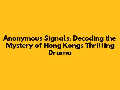 Hey everyone, let's dive into the gripping world of Anonymous Signals, a Hong Kong drama that's been making waves! This series is a rollercoaster of suspense, mystery, and crime, packed with compelling characters and a plot that keeps you guessing. If you're a fan of thrillers, detective stories, or just love a good drama, you're in for a treat. We'll break down everything you need to know, from the plot and characters to where you can watch it and why it's worth your time. So, grab your snacks, settle in, and let's explore this amazing show!