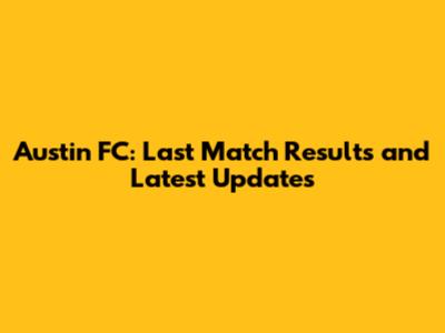 Austin FC: Last Match Results And Latest Updates