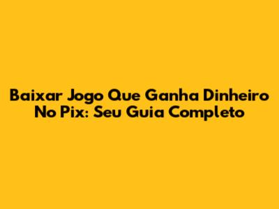 Baixar Jogo Que Ganha Dinheiro No Pix: Seu Guia Completo