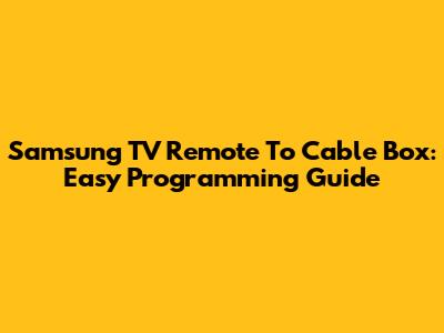 Samsung TV Remote To Cable Box: Easy Programming Guide