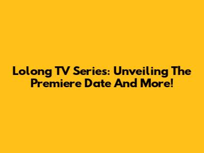 Lolong TV Series: Unveiling The Premiere Date And More!