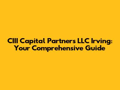 Hey guys! Ever heard of CIII Capital Partners LLC in Irving, TX? If you're diving into the world of commercial real estate finance, this name might ring a bell. Let’s break down everything you need to know about them, from their core business to their impact on the industry. Trust me; it's worth understanding!