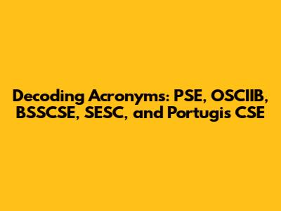 avigating the world of acronyms can sometimes feel like deciphering a secret code. In various fields, including technology, education, and international organizations, acronyms are used to represent longer names or concepts. This article aims to decode some of these acronyms, specifically focusing on PSE, OSCIIB, BSSCSE, SESC, and Portugis CSE. Understanding these acronyms will not only help you grasp the underlying concepts but also enhance your communication and comprehension in related discussions. Let's dive in and unravel the meanings behind these abbreviations to provide clarity and context.