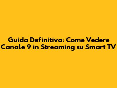 Ciao a tutti ragazzi! Oggi parliamo di una cosa che molti di voi cercano: come vedere Canale 9 in streaming su smart TV. So che può sembrare complicato all'inizio, ma fidatevi, è più facile di quanto pensiate. In questa guida, vi porterò passo dopo passo attraverso tutti i metodi più efficaci per godervi i vostri programmi preferiti di Canale 9 direttamente sul grande schermo della vostra TV intelligente. Niente più schermi piccoli o impostazioni complicate, solo puro divertimento televisivo!
