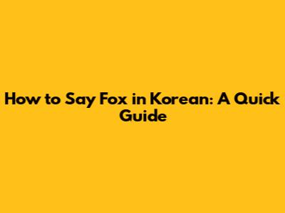 How To Say 'Fox' In Korean: A Quick Guide