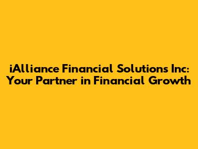 Hey everyone, let's dive into the world of iAlliance Financial Solutions Inc! If you're looking for a partner to help you navigate the often-complex world of finance, you've come to the right place. In this article, we'll explore what makes iAlliance tick, what services they offer, and how they can potentially help you achieve your financial goals. Whether you're a seasoned investor or just starting to think about your financial future, this is for you. So, grab a coffee (or your beverage of choice), get comfy, and let's get started!