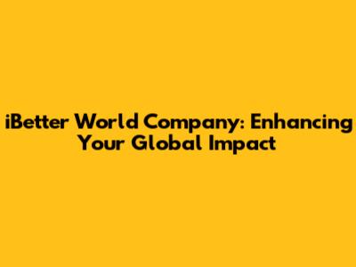 Hey guys! Ever wondered about companies that are not just about profit, but also about making the world a better place? Well, let me introduce you to iBetter World Company. This isn't just another business; it's a movement, a vision, and a tangible force for positive change. We're talking about a company that is deeply committed to sustainability, ethical practices, and fostering a global community that strives for improvement in every aspect of life. From the products they create to the way they operate, iBetter World Company aims to inspire and empower individuals and communities to contribute to a more equitable and healthier planet. Think about it – in today's world, where environmental concerns and social responsibility are paramount, a company like iBetter World isn't just a good idea; it's a necessary one. They are at the forefront of innovation, constantly exploring new ways to minimize their ecological footprint while maximizing their social impact. This dedication goes beyond mere corporate jargon; it's woven into the very fabric of their existence. They understand that true progress comes from a holistic approach, where economic growth is balanced with environmental stewardship and social well-being. Their journey is one of continuous learning and adaptation, embracing challenges as opportunities to refine their strategies and deepen their commitment. So, if you're looking for a company that walks the talk, that genuinely cares about the future, and that actively works towards creating a better world, then you've come to the right place. Stick around, because we're about to dive deep into what makes iBetter World Company such a unique and inspiring entity in today's corporate landscape.