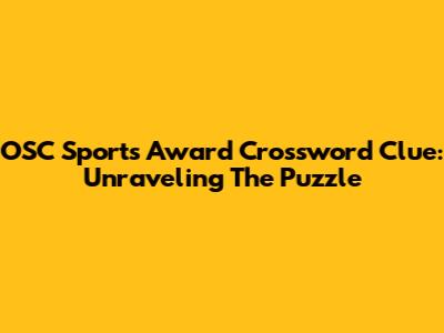 OSC Sports Award Crossword Clue: Unraveling The Puzzle