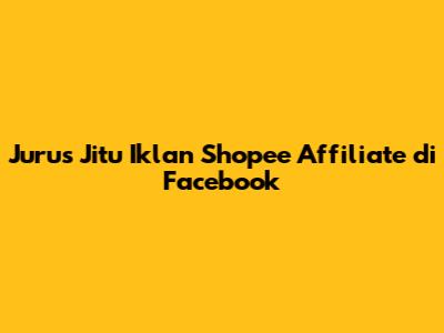 Jurus Jitu Iklan Shopee Affiliate Di Facebook