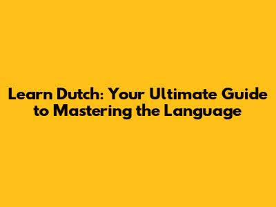 Learning a new language can be an exciting and rewarding experience, and Dutch is no exception. Whether you're planning a trip to the Netherlands or Belgium, interested in Dutch culture, or simply looking to expand your linguistic skills, this comprehensive guide will provide you with the resources and strategies you need to learn Dutch effectively. So, grab a cup of coffee, get comfortable, and let's dive into the world of Dutch!