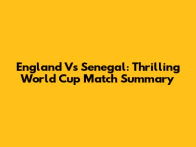 England Vs Senegal: Thrilling World Cup Match Summary
