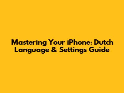 Mastering Your IPhone: Dutch Language & Settings Guide