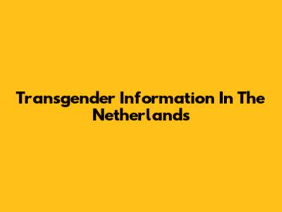 Transgender Information In The Netherlands
