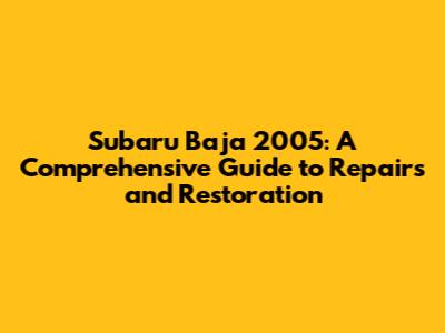 Subaru Baja 2005: A Comprehensive Guide To Repairs And Restoration