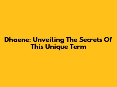 Dhaene: Unveiling The Secrets Of This Unique Term