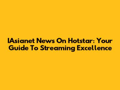IAsianet News On Hotstar: Your Guide To Streaming Excellence
